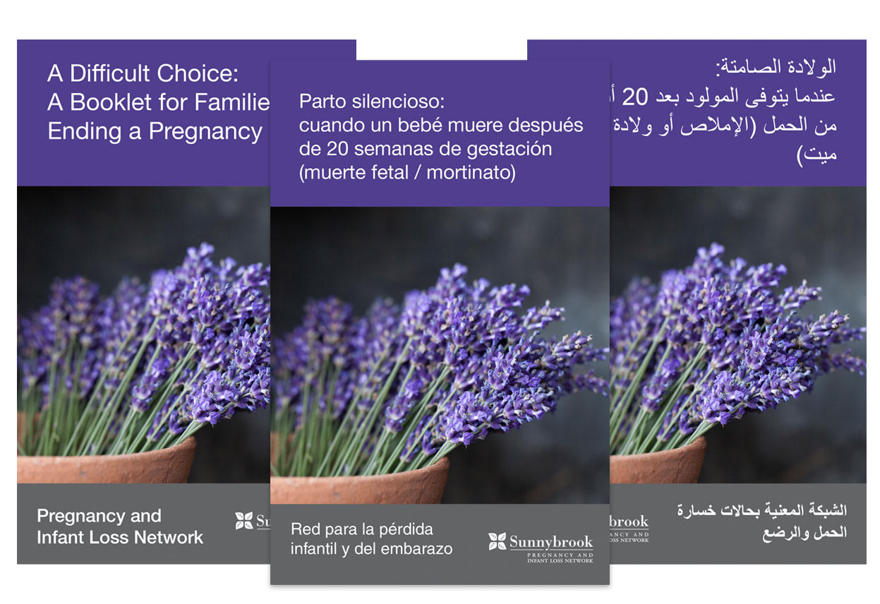 Pregnancy and Infant Loss happens to 1 in 4 pregnancies and if often suffered in silence. The Pregnancy and Infant Loss Network, out of Sunnybrook Health Sciences Centre, aims to change the narrative and offer support to families who walk this painful path. Having gone through my own journey, I was brought on to re-design resources that give families information and resources on how to navigate their pain. The booklets were translated into 6 different languages and touched upon subjects such as Early Loss, Explaining the Loss to a Sibling and Medical Termination.