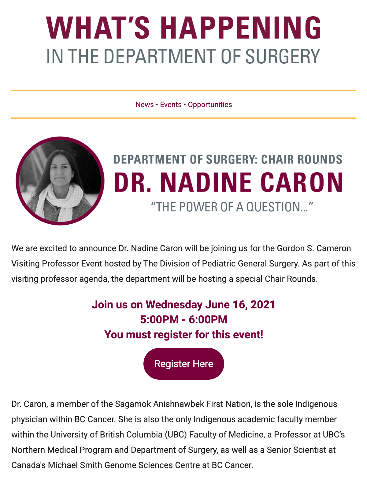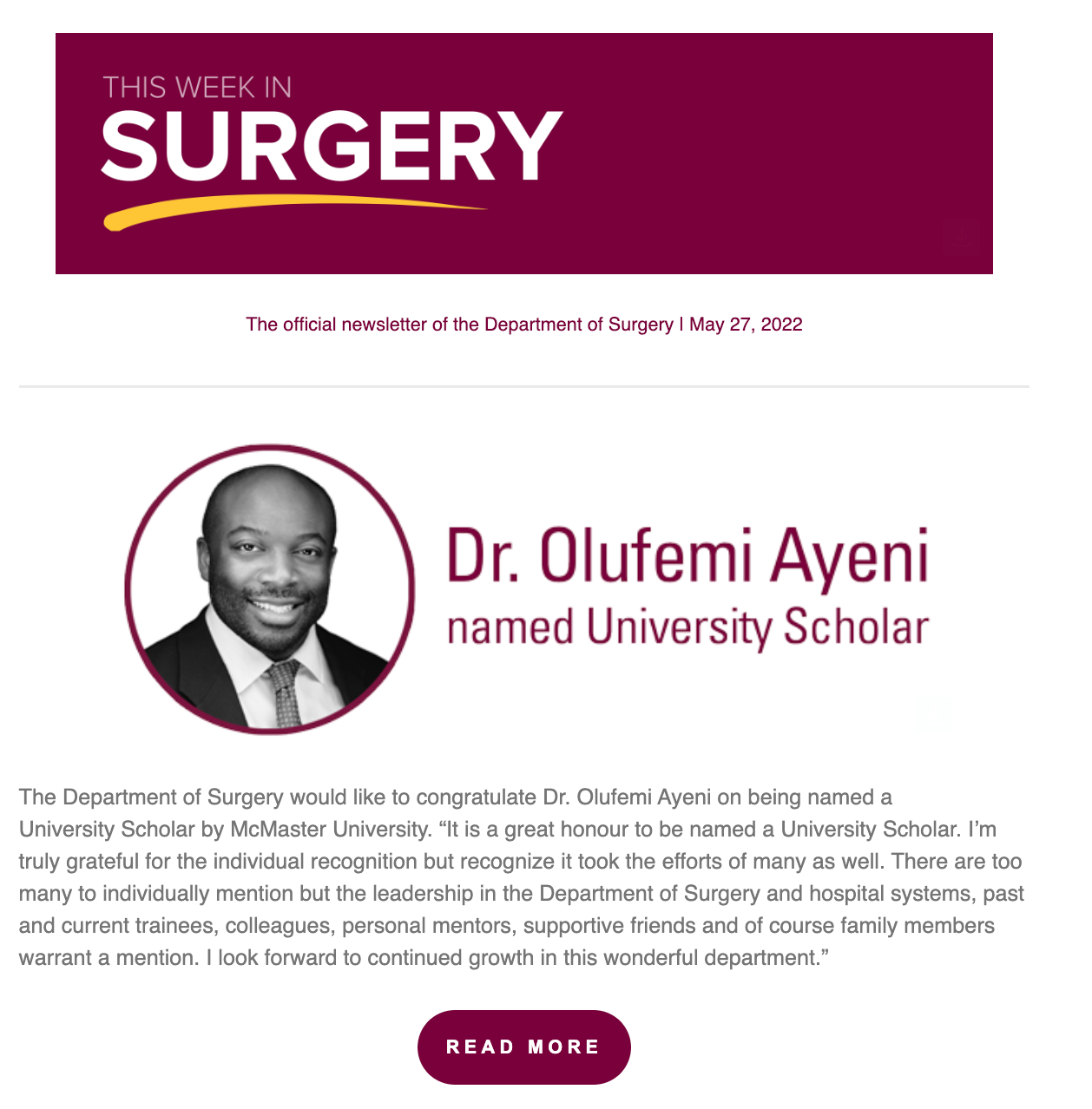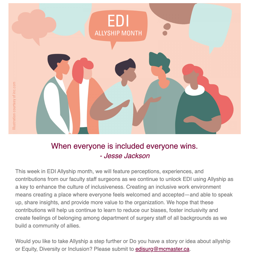 The Department of Surgery at McMaster University changed Chairs at the start of 2021. The new Chair, Dr. Mohit Bhandari envisioned a more concise way of communicating. With eleven different surgical divisions, information was often fragmented and difficult to navigate.